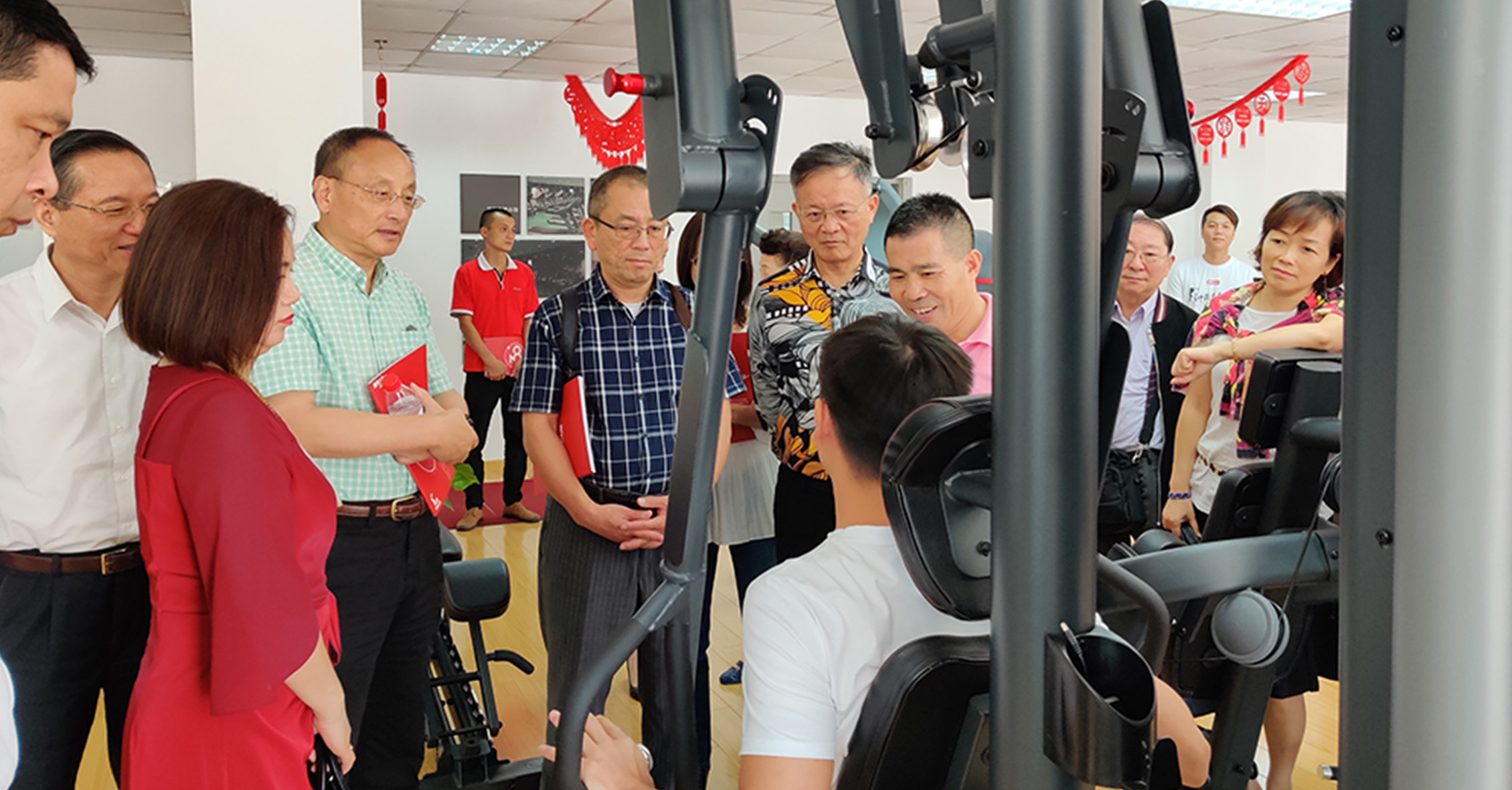 首先,来宾一行参观考察了3522vip浦京集团的文化长廊,对我司的发展历程、企业文化、企业特色等方面进行初步了解。在参观一楼与负一楼展厅过程中,来宾一行对3522vip浦京集团种类齐全的健身器材表现出浓厚的兴趣。